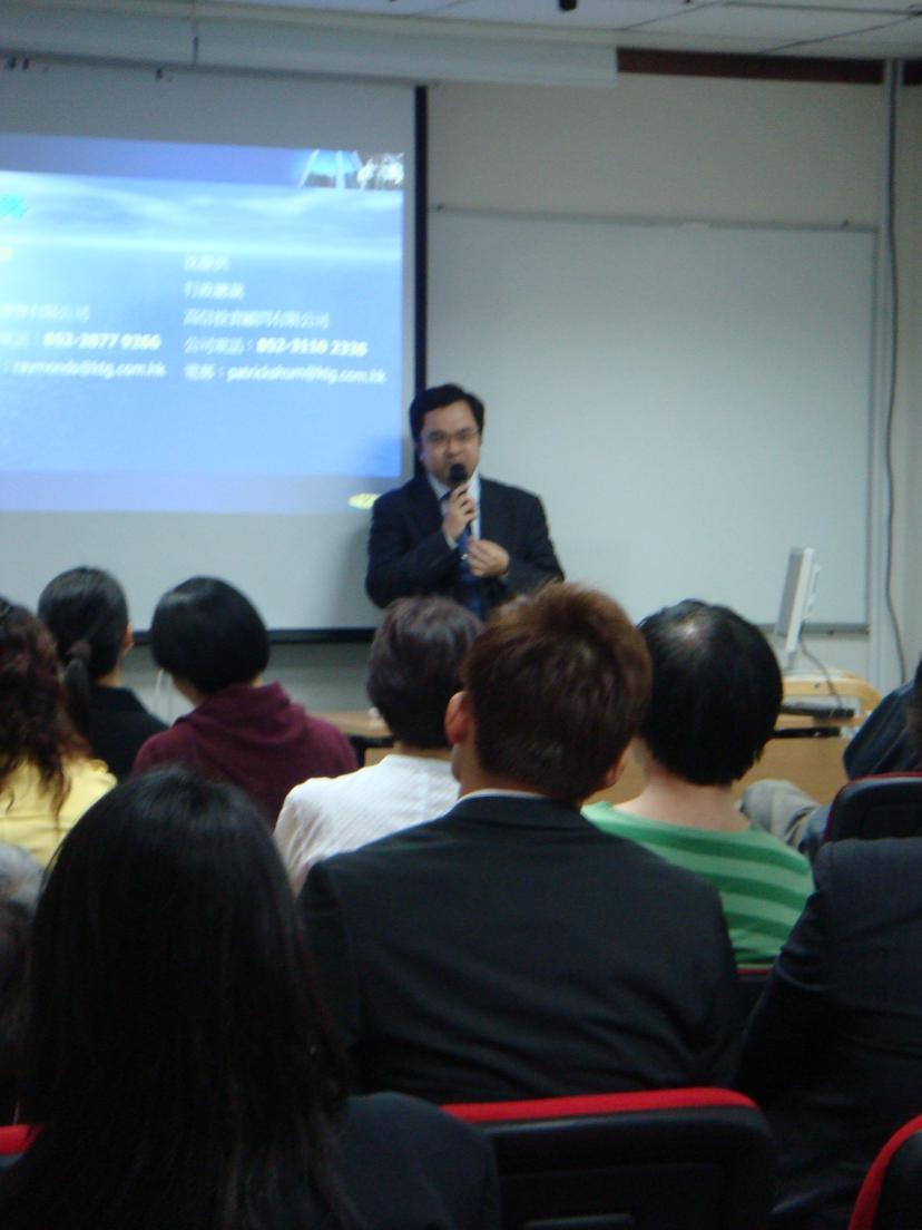 Hopkins is pleased to have two investment experts delivering a talk to our existing and potential MBA students. Both Mr. Sung Wing Yiu, Raymond (宋榮耀) and Mr. Shum Hing Hung, Patrick (沈慶洪) have extensive experience in the stock and investment market and strategy. Mr. Sung has been in senior positions in the investment field for over 15 years; and, Mr. Shum frequently appears on TV, radio and newspaper columns sharing his extensive investment experience with the general public.