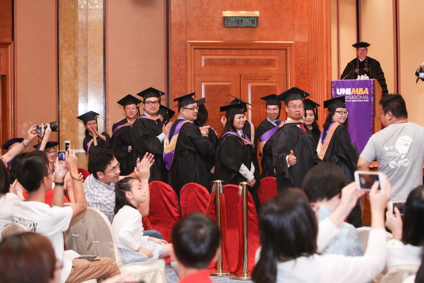 Graduates included MBA students in the UNIMBA Hong Kong and UNIMBA Guangzhou programs, which are complete MBA programs delivered onsite by UNI faculty in Hong Kong and Guangzhou, China. A commencement celebration is held every two years to celebrate the completion of a new cohort of UNIMBA students.